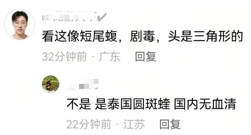 有网友在视频下留言,说这条蛇有剧毒,看着像短尾蝮,也有网友表示像圆斑蝰。