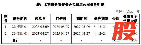 募集说明书披露,本次公司债券募集资金扣除发行费用后,拟全部用于偿还公司债券“22濮阳01”和“23濮阳01”回售兑付本金,具体使用情况如下: